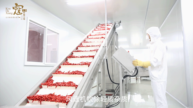 辣椒经过了人工去把、去蒂、除杂,风选机吹除轻质杂物,浸泡,气泡清洗等十二道工序的预处理,才可进行发酵。
