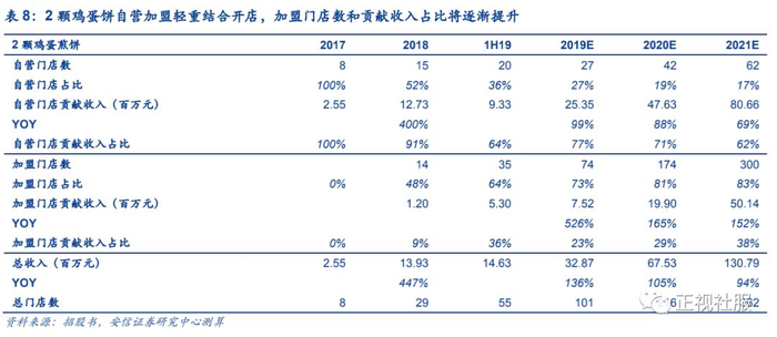 3.1.3. 2颗鸡蛋煎饼:轻重结合模式开店,2019-2021年将迎来高速增长