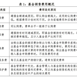 根据现行法律法规,基金销售费用主要包括认购费、申购费、赎回费、转换费、销售服务费和客户维护费,相关费用设定安排情况如表1所示。