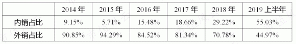 出口对蓝思科技的销售曾经具有主导地位,外销比例一度高达90%以上。2016年以来,蓝思科技国内销售的比重逐步上升,2019年上半年内销比例首次超过外销,已经占到了55%。