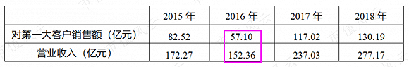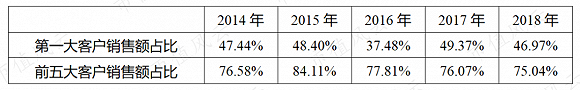 近年财报显示,蓝思科技前五大客户的销售额占比长期在75%以上。特别是第一大客户,对公司营业收入的贡献就超过了45%(除2016年)。