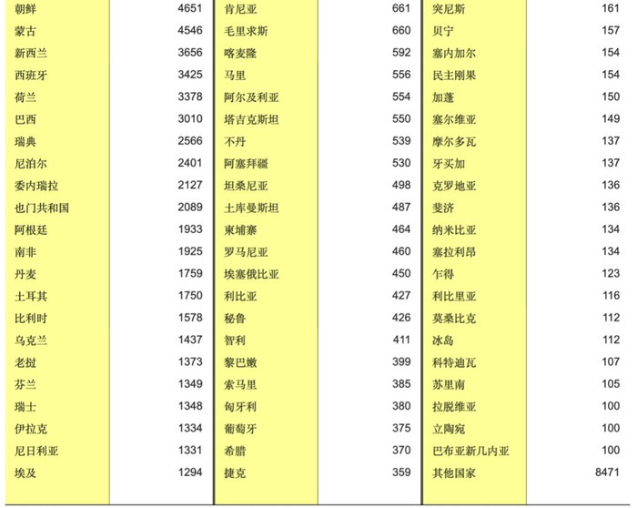 这十个国家人数接近总人数的70%。而前十名中,除了缅甸、越南、印度三个发展中国家,其余都是发达国家。