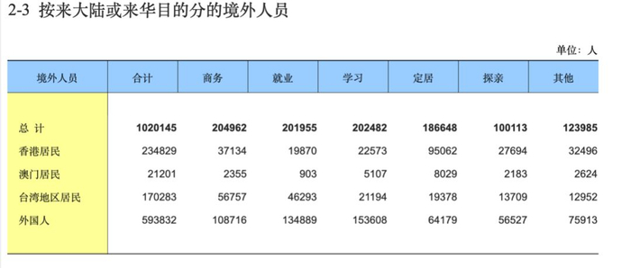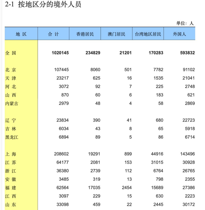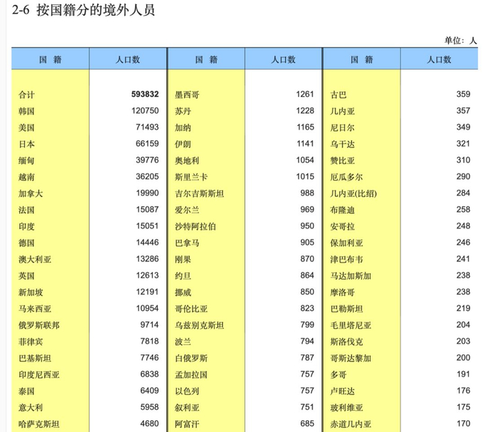 从第六次人口普查的数据看,外籍人口占总数也仅有0.044%左右。即使目前翻倍,也远低于日本等亚洲国家2%的水平。
