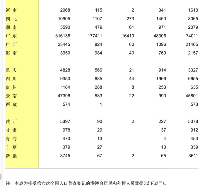 就分布来看,排前十的省级行政区分别是:上海市143496人,北京市91102人,广东省74011人,云南省45801人,江苏省30928人,山东省30172人,福建省27386人,浙江省26765人,辽宁省22723人,广西21465人。