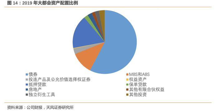 大都会是美国的大型寿险公司之一,除了提供传统的寿险业务之外,还提供与投资收入挂钩的变额寿险、变额年金以及养老金基金管理和投资管理服务等。在大都会资产配置中,债券占比58%,独立衍生工具占比2%(不含嵌入在保单中的嵌入式衍生工具)。得益于较好的利率风险管控,大都会的总投资收益率和固收类证券投资收益率表现平稳。