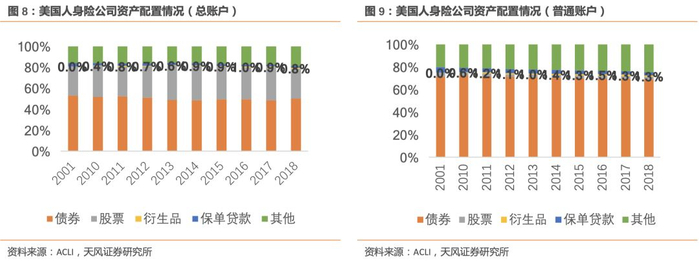 1、美国人身险公司资产配置及投资收益