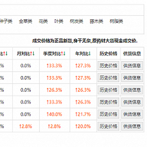 同样涨幅居前的的鱼腥草(产地四川,规格:野生),2020年1月价格为8.5元,2月涨至12元,截至3月2日最新价格显示为13元,期间涨幅为52.9%;