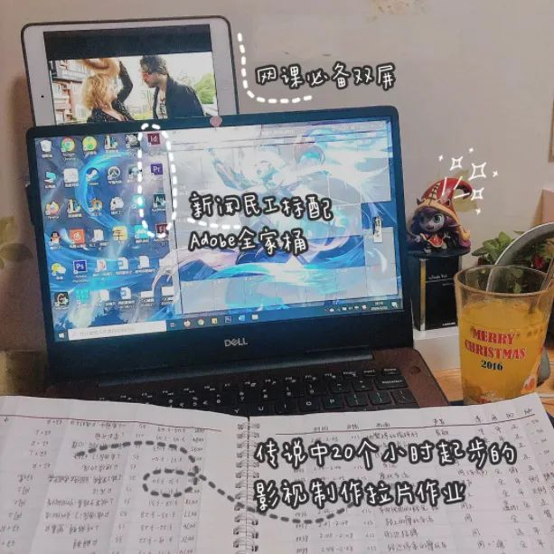露露手办、Sailor彩墨和百香果水,加上电脑桌面的FF14LOLOWSteam给人以一种桌主精致悠闲的假象;然而双屏直播的在线课程、Adobe全家桶和令人密恐的拉片作业,暴露了桌主是苦苦挣扎的卑微“新闻民工”的事实。
