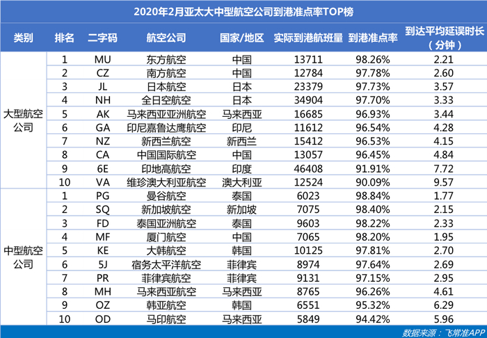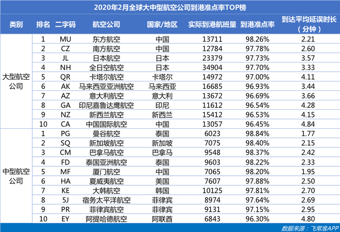 原标题:全球航司2月准点率排名:东方航空成准点冠军