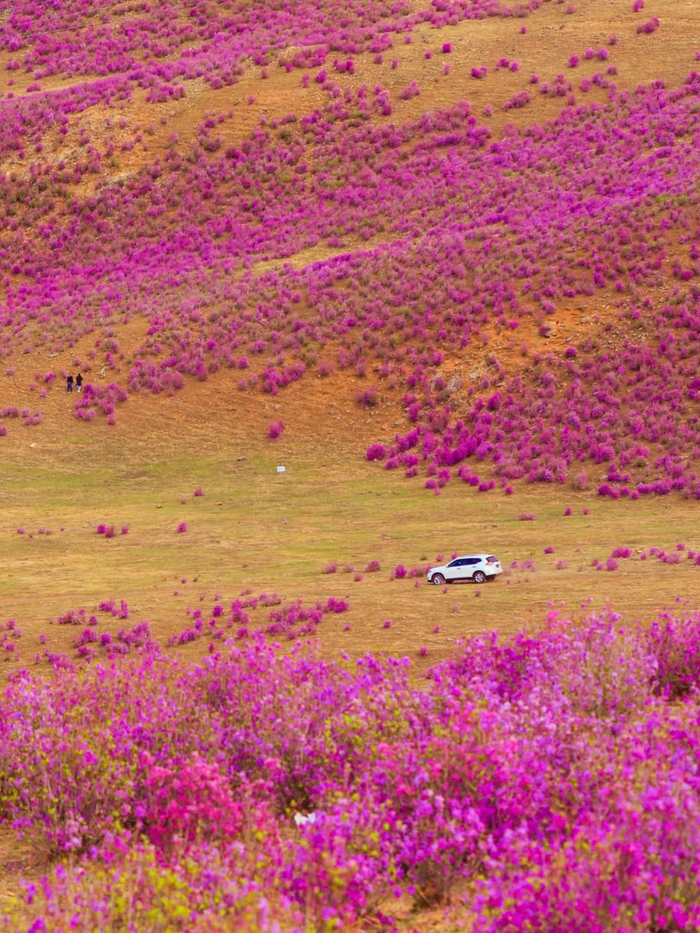 每年4月-5月内蒙古扎兰屯的兴安杜鹃开始绽放东北的春色日渐浓郁(内蒙古扎兰屯山坡上的杜鹃花,摄影师@邱会宁)▼