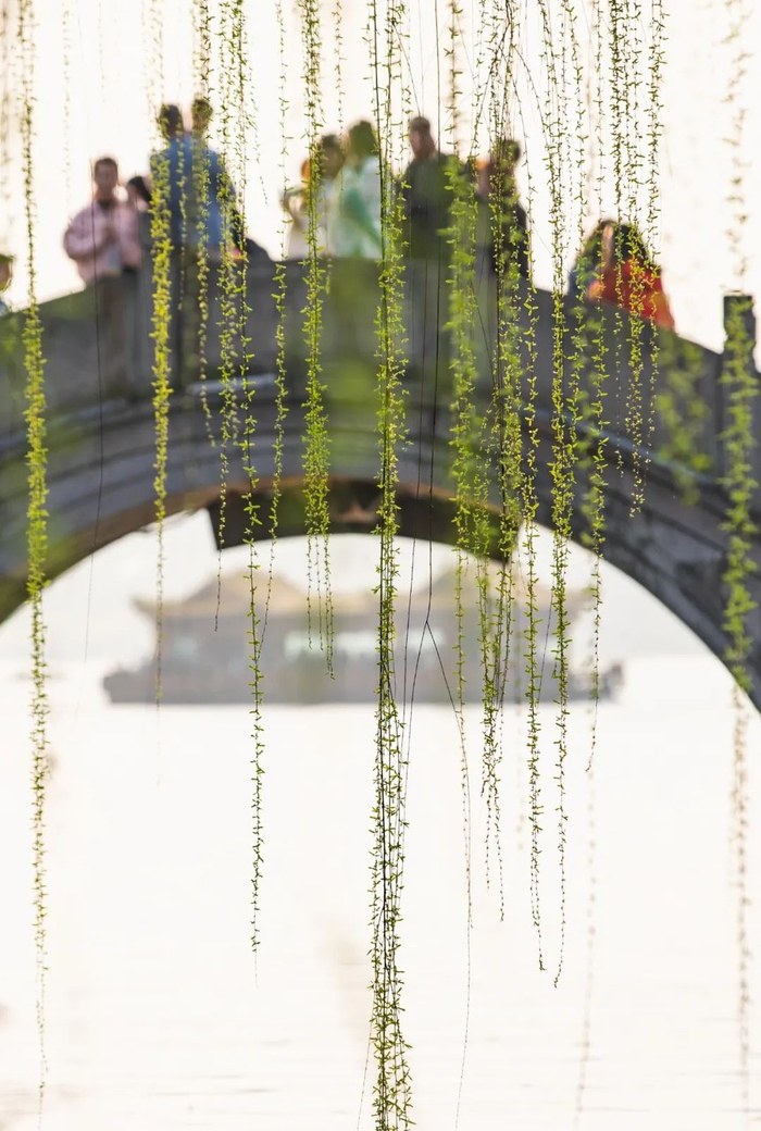 在许多地方柳树都会在初春贡献最早的一道嫩绿的风景它枝细长而下垂随风轻柔摆荡人谓之“杨柳依依”(杭州西湖柳树,摄影师@杨照夫)▼