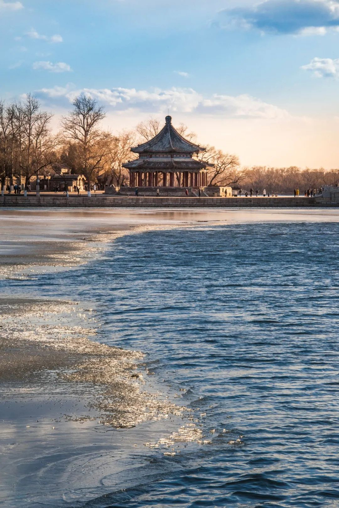 平均每年的3月6日前后颐和园昆明湖完全解冻北京才终于迎来春天而接下来的58天将是一场时光锦标赛(北京相关日期皆为1981-2010年30年平均值)(春季昆明湖,摄影师@谢禹涵;北京的物候资料依据仲舒颖等《近30年北京自然历的主要物候期、物候季节变化及归因》、邢小艺等《北京植物物候的季节动态特征——以北京植物园为例》)▼