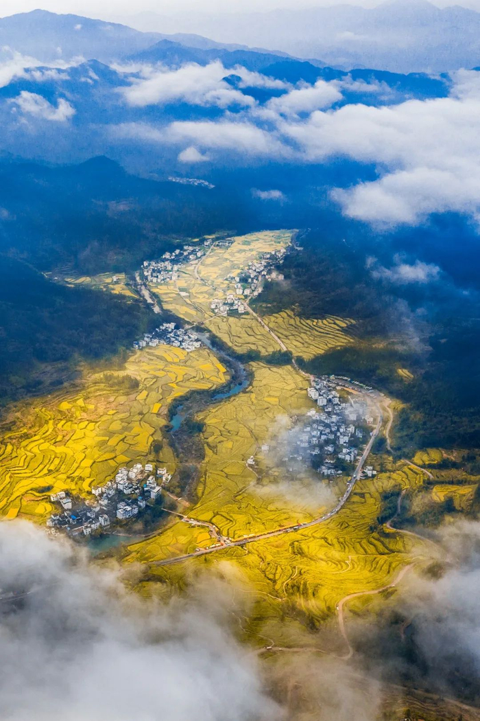 而在2月的江西婺源油菜花蕾初现至3月初进入始花期山谷逐渐遍地金黄江西已是春意醉人(江西婺源江岭的油菜花,摄影师@陶洪;江西的物候资料依据自汪如良等《鄱阳湖旅游地区油菜花花期的分析研究》)▼