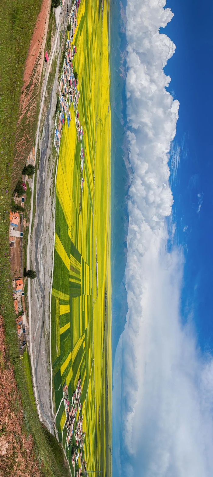 其中一些条件相对较好的地方在人类的开拓下油菜花可以像大海一样铺陈开来壮阔无边(请横屏观看,青海门源油菜花,摄影师@姜曦)▼