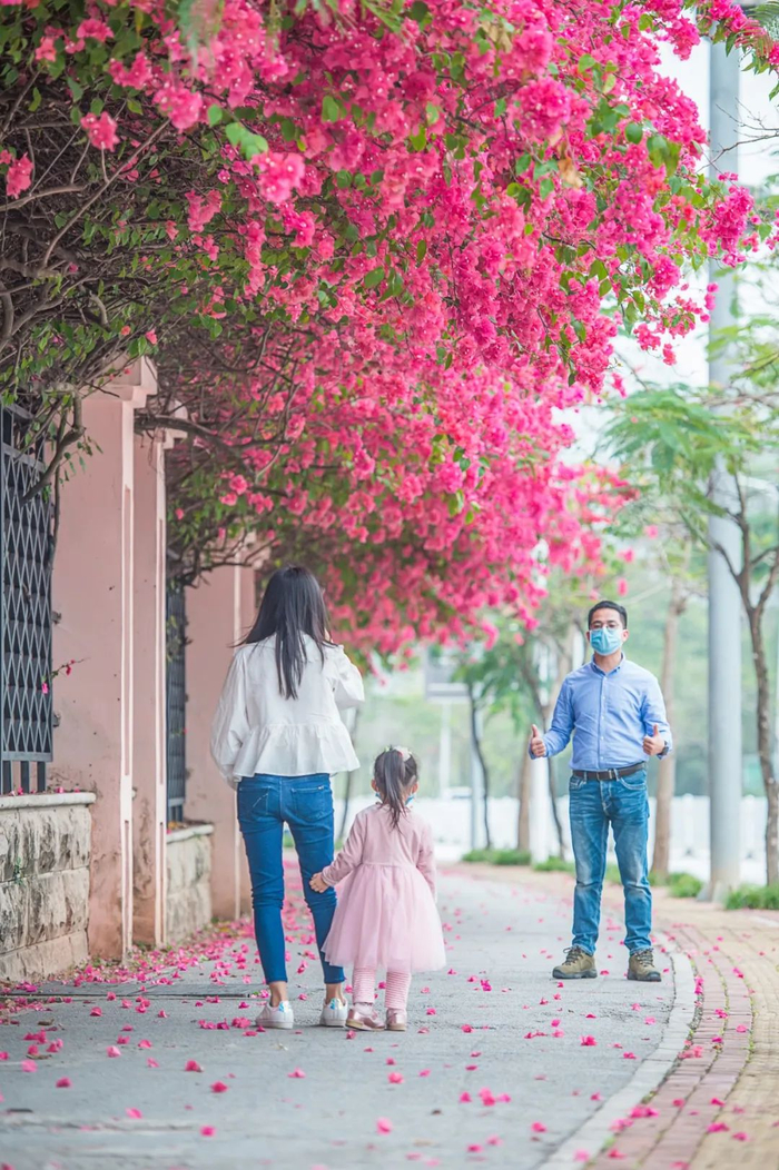 直到3月底南宁的荔枝开花时春去夏至人们又开始期待火热的季节中美味的水果了(南宁市青环路的三角梅,原产巴西的藤状灌木,在两广、福建等地有较多引种,冬春季开花,花期较长,摄影师@沉默)▼