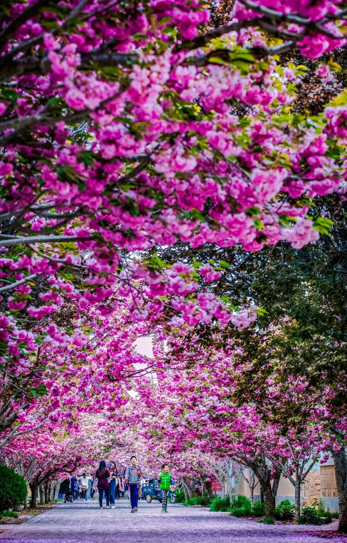春游踏青(山东莱阳樱花隧道,摄影师@戚伟民)▼