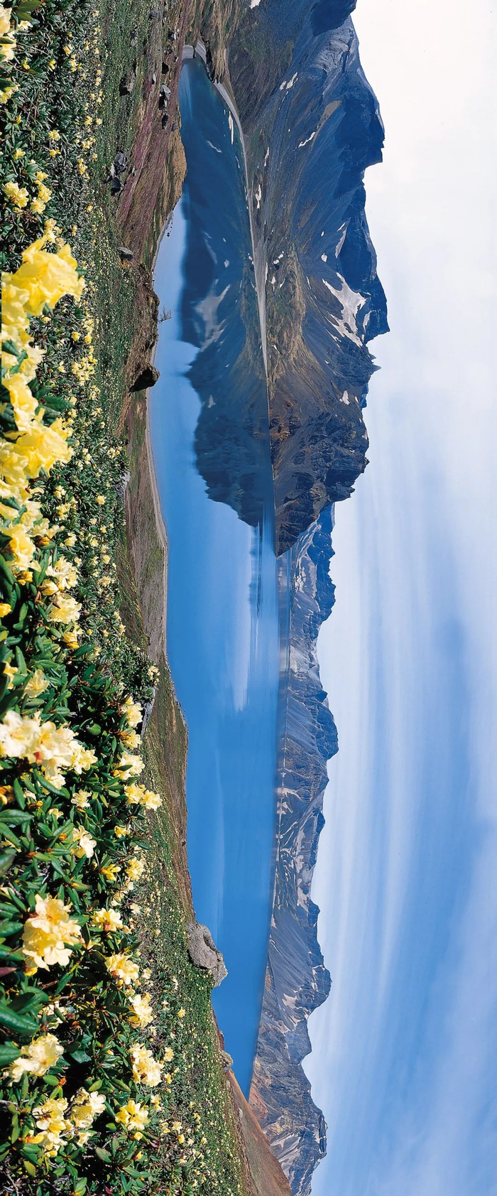在海拔超过2000米的长白山天池兴安杜鹃的近亲牛皮杜鹃、苞叶杜鹃直到6-7月才开始绽放这是天池的春天(请横屏观看,长白山天池春季花海,黄色为牛皮杜鹃,图片来源@汇图网;长白山的物候资料主要依据靳英华等《长白山苔原带优势植物种的分布格局及其关联性研究》、宗盛伟等《近52a长白山苔原带生长季气候变化特征》)▼