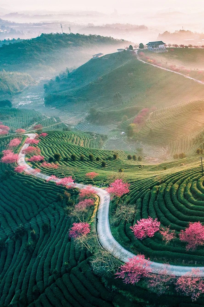 (福建之春,漳平樱花茶园,摄影师@陈永诚;物候是指生物适应环境而产生的周期性反应;此外,还有气象学对春季起始的定义,即每年连续5日日均气温≥10℃的第一天)▼