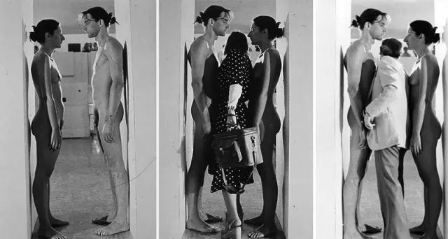 《无量之物》1977 年,乌雷和阿布在意大利博洛尼亚举办展览的展厅中空无一物,站在门口的他们就是展品本身。两人赤身裸体地站在门的两侧,直勾勾地盯着对方,而每个想进入博物馆的人都必须从他们之间那个狭小的缝隙通过。