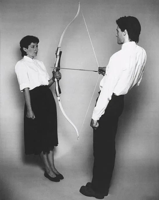 《休止的能量》乌雷和阿布之间,用一只弓箭来平衡,该箭箭头有毒,并对准阿布的心脏,整个过程持续 4 分 10 秒,「这是一场完全关乎信任的表演。」