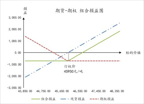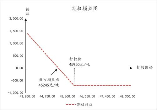 从期权的损益图可以看出,当沪铜期货主力合约价格跌破45245元/吨的时候,该期权便开始产生盈利。