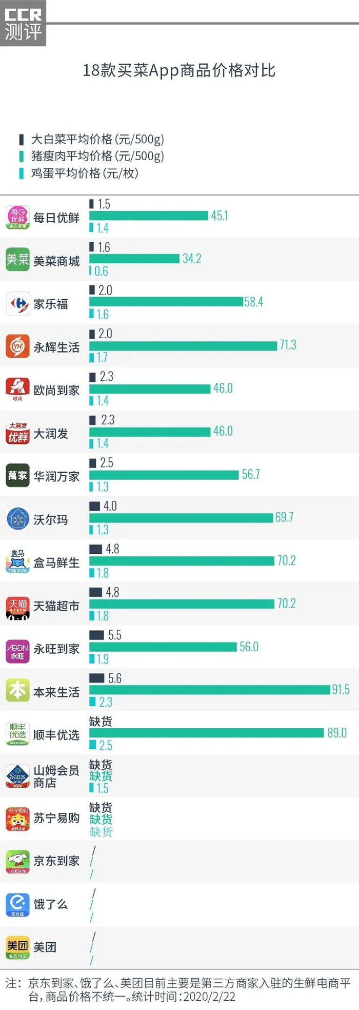 美菜商城、每日优鲜最便宜,本来生活、顺丰优选售价高