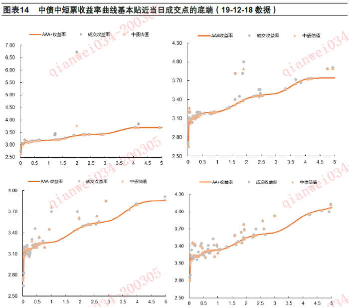 3) 中债中短票曲线和企业债曲线的样本券包含了一些金融债,并不纯粹是产业债,因此在具体应用中投资者要注意这个误差的影响。