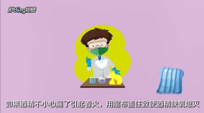6.若酒精不小心泄漏导致起火,用湿布盖住致使火焰缺氧熄灭。
