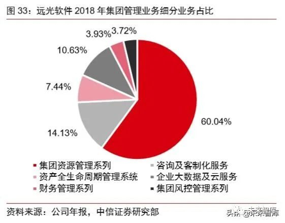 电力集团企业管理业务突出,受益于泛在对内业务较高优先级。公司由电力行业财务 信息化系统起家,逐步发展成面向电力行业的整体性集团企业管理业务,提供多个系列细分系统。集团企业管理业务板块也是公司传统优势领域,主要客户为国网、南方电网等电 力系统公司。2018 年,集团管理业务收入占比高达 73.73%。泛在电力物联网建设中,相 对于对外业务,对内业务的难度较低,且更符合由坚强智能电网向泛在电力物联网的过渡 期建设,整体建设进度较快。2019 年泛在统一组织建设任务中,对外业务 4 项,对内业 务 9 项,公司有望受益国网对内业务的率先升级。
