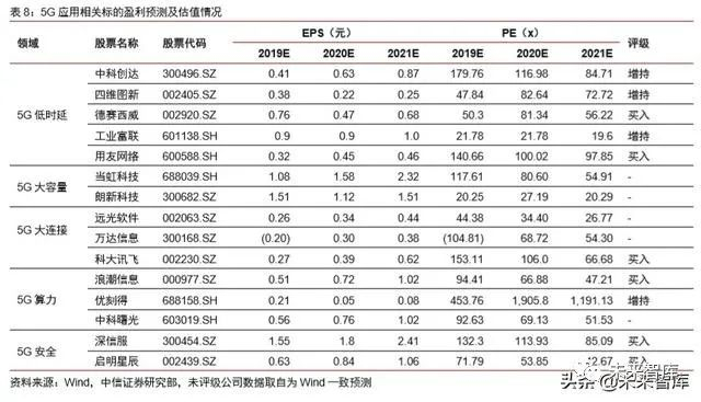 在此时点,随着由 G 端引导的 5G 通信基站及协议标准的完善以及 C 端 5G 终端的加 速推广,我们认为,5G 相关应用将登上历史舞台,成为未来 B 端的主要行业机遇,5G 算力和 5G 安全的支撑将在 5G 应用的发展过程中持续受益。