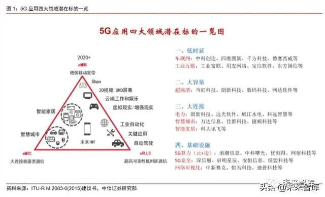 在垂直细分领域中,低时延、大容量、大连接为 5G 的三大应用场景。