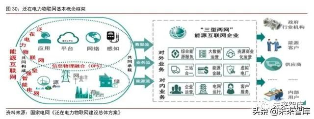 从降本到增收是国网建设泛在电力物联网的本质要求,通过大连接带动数据分析及上层应用落地为泛在电力物联网建设的主要思路。坚强智能电网主要针对发电、输电、配电 端的“源-网-荷-储”,面向的是电力成本端,为电网系统降本为主。而泛在电力物联网的 建设,与坚强智能电网共同形成了能源互联网,实现了数据流、业务流、能源流等三类信息流的全面获取,助推数据应用的形成,直接服务于终端客户。因此,泛在电力物联网使得国网以数据为依托的多样化应用成为可能,丰富了业务种类,增强了电力供给端即国网 与电力需求端客户的粘性,为国网从能源企业转型为能源互联网企业奠定了基础。