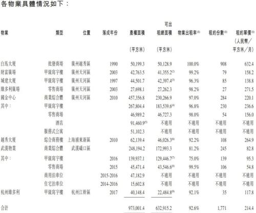 2019年越秀房托基金旗下的各物业表现,还是较为稳健的。智通财经APP了解到,物业组合共有八项,首先是位于广州的白马大厦、财富广场、城建大厦、维多利广场、广州国际金融中心,位于上海的越秀大厦等六项成熟型物业,其次是位于武汉的武汉越秀财富中心、星汇维港购物中心(武汉物业)和杭州维多利商务中心两项成长型物业,公司物业产权总面积共计97.3万平方米,其中成熟型、成长型物业分别占70.4%、29.6%,除去各大厦的泊车位、酒店和配套用房面积后的可供出租总面积为63.3万平方米。