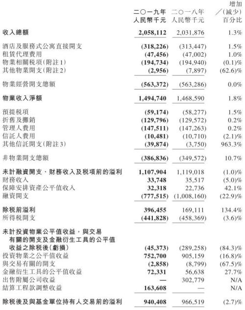 而利润端的小幅下滑,一定程度归功于融资开支大幅变动的“修饰”。智通财经APP了解到,越秀房托基金的物业经营开支总额录得与去年持平的5.63亿元,而大幅的汇兑亏损导致其他信托开支一项同比大幅增长963.3%,使得非物业开支总额同比增长10.7%至3.87亿元,公司未计融资开支、财务收入的税前利润仅小幅下滑1%至11.08亿元,之后由于费用占比最大的融资开支一项2019年仅录得7.78亿元,同比大幅降低22.9%,使得公司税前利润同比大增134.4%至3.96亿元。