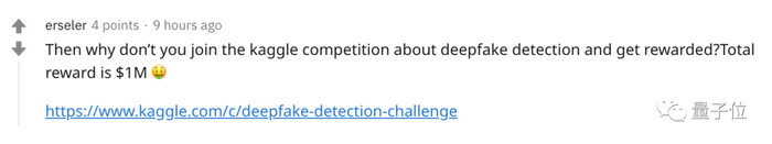 有网友表示,如果他们把这项研究用来参加Kaggle的假脸识别大赛,那么将有可能获得最高50万美元奖金。