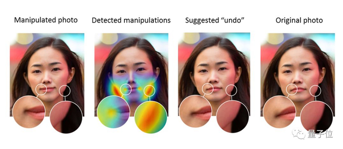 今年他和Adobe合作的另一篇论文Detecting Photoshopped Faces by Scripting Photoshop,可以发现照片是否经过PS瘦脸美颜的操作,而且还能恢复“照骗”之前的模样。