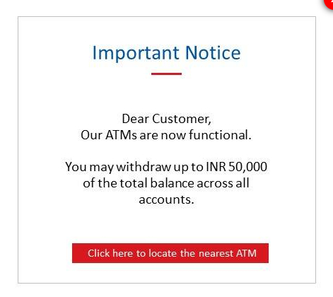 以下为挂在Yes银行官网首页的通知,已告之储户每人最多能从所有帐户中提取50000卢比(682美元)。