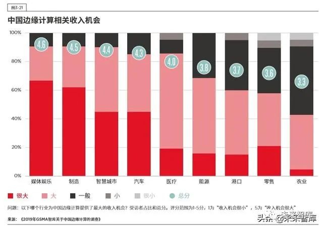 要把中国边缘计算相关的长期收益机会按大小进行排 列是很困难的。该技术仍处于早期阶段,围绕应用和 商业模式存在一系列开放式问题。另外,关于边缘计 算收入,主要有两方面的考虑——其中一方面是边缘 计算基础设施的初始部署(大部分是一次性组件加维 护),另一方面则是边缘平台所交付的相关边缘服务, 如分析、安全和存储(经常性收入来源)。