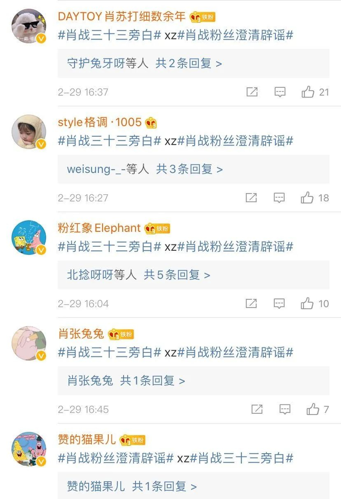 饭圈内部,粉丝们的言行规范等都有严苛的规定。图为肖战反黑站下面的统一评论