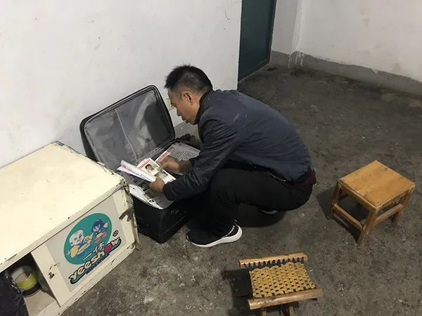 申军良在济南的租住屋内翻看行李箱的寻人启事。澎湃新闻记者 钟笑玫 图