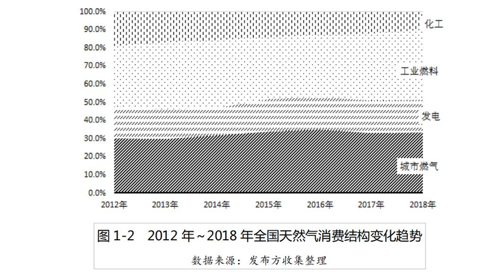 重庆石油天然气交易中心发布的《中国天然气市场年度报告2019》显示,2018年我国天然气消费结构构成为:工业燃料为38.6%、城市燃气为33.9%、天然气发电为17.6%、天然气化工为10.1%。其中,工业燃料消费量为1058.9亿立方米,主要用于陶瓷、玻璃、钢铁、石化、氧化铝等行业,在我国四大用气结构中占首位。再加上天然气化工,则工业用天然气的消耗量超过50%。