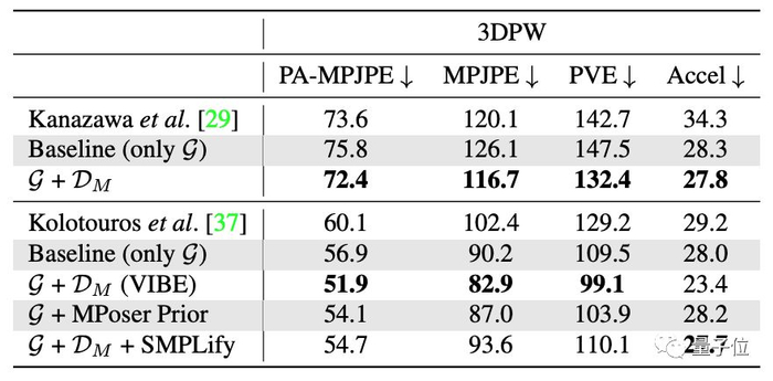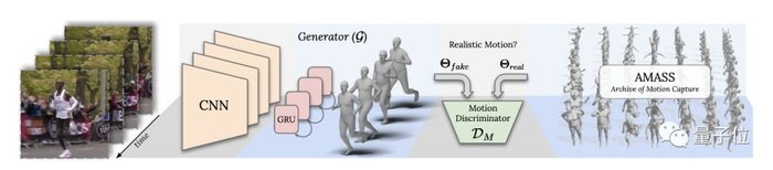 另一方面,运动鉴别器能够以SMPL格式访问大量人体动作。