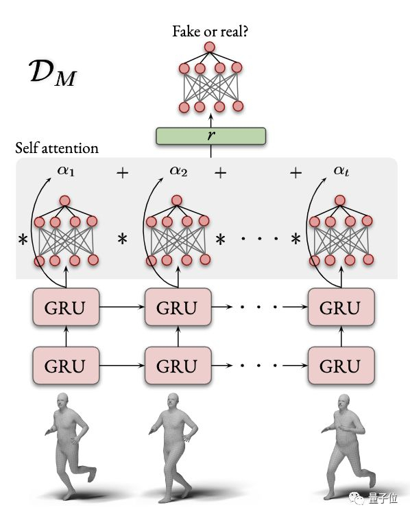 由于循环网络在顺序处理输入时会更新其隐藏状态,最终的隐藏状态将保留该序列中信息的摘要。研究人员在鉴别器中引入了自注意力机制,来放大最终表示中最重要的帧的作用。