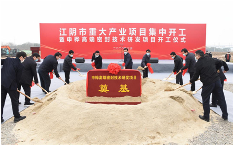 本次主会场开工的申桦高端密封技术研发项目总投资1亿美元,致力于高端汽车、航空航天领域密封件的研发和产销。据悉,该项目位于临港开发区,占地80亩,拟建设生产车间、研发中心、物流中心等。一期工程计划年内竣工,二期研发中心建设拟于明年下半年投用。项目建成达产后,可年产增强型汽车密封部件1140万件、高精度医疗仪器部件300万件、半导体制程密封件200万件等,预计新增年销售5亿元、税收6000万元。