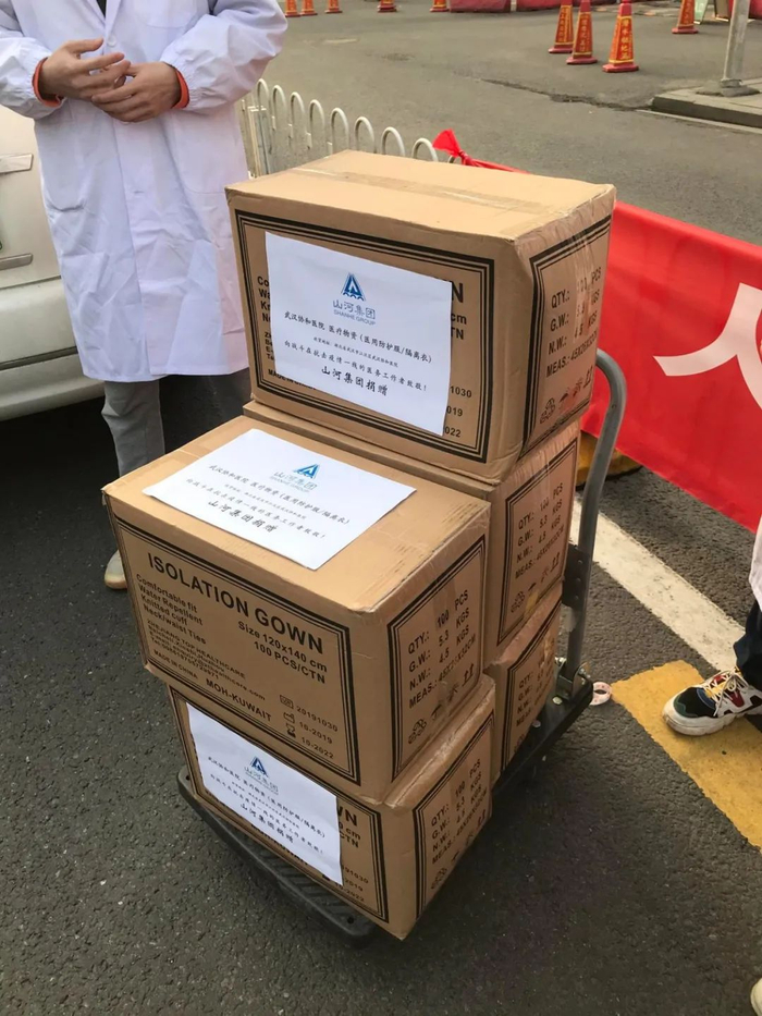 在医疗物资紧缺的阶段,山河集团立即成立了物资采购小组,青年志愿者们根据医院的实际需求,四处奔波联系货源,区域公司也积极行动,先后将价值110万元的各类物资送到急需的医疗机构。