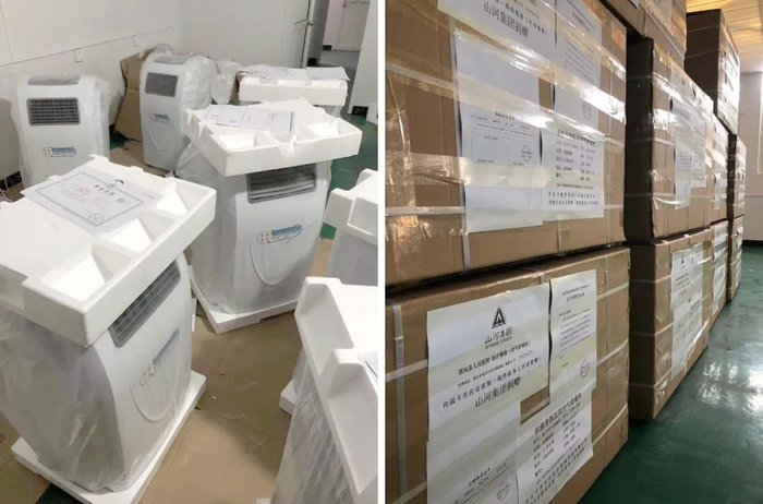 山河集团向武汉协和医院及团风县人民医院捐赠20台医用移动空气消毒机,向黄冈市中心医院本部及大别山区域医疗中心捐赠20台空调柜机,向武汉及黄冈团风地区的医院捐赠7000件医用防护隔离衣,向武汉、襄阳、团风等医疗单位捐赠2.5吨84消毒液、20000个医用口罩、44000双医用橡胶外科手套。山河集团云南公司还向团风县人民医院捐赠了20台制氧机、1台负压救护车,填补了团风没有负压救护车的空白。