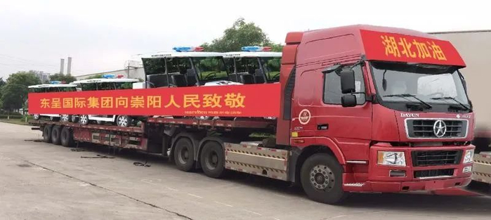 一、东呈国际集团支援湖北抗疫又有新动作。今天,东呈国际集团又向湖北捐赠警用电动车24台,价值160多万元,并且已启运。加上以前的捐赠,东呈集团已累计捐款、捐物、捐客房价值超过一千万元。程新华、程移华兄弟二人还定向捐赠给祟阳县现金40万元。