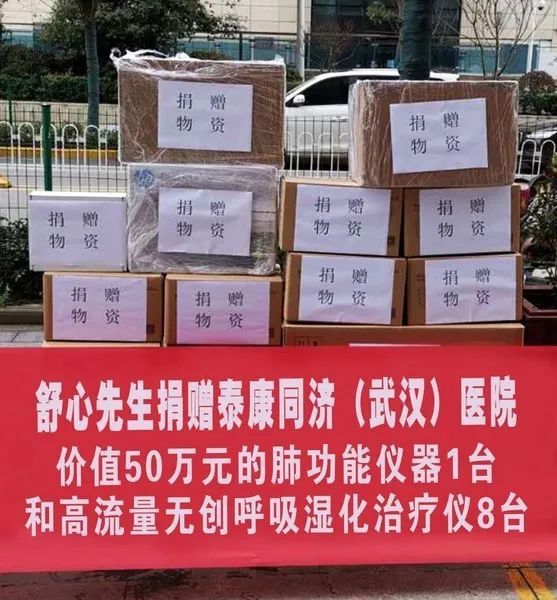 ——2月24日,舒心校友在九州通医药集团股份有限公司采购到价值50万元的肺功能仪器1台和高流量无创呼吸湿化治疗仪8台捐至泰康同济(武汉)医院。