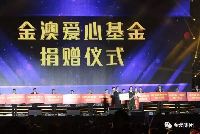 2017年11月5日,“星光耀金澳 辉煌再启航”金澳科技改制二十周年大型公益慈善晚会现场爱心涌动,金澳控股集团旗下16个分公司向湖北省慈善总会金澳爱心基金捐赠爱心善款1000万元。