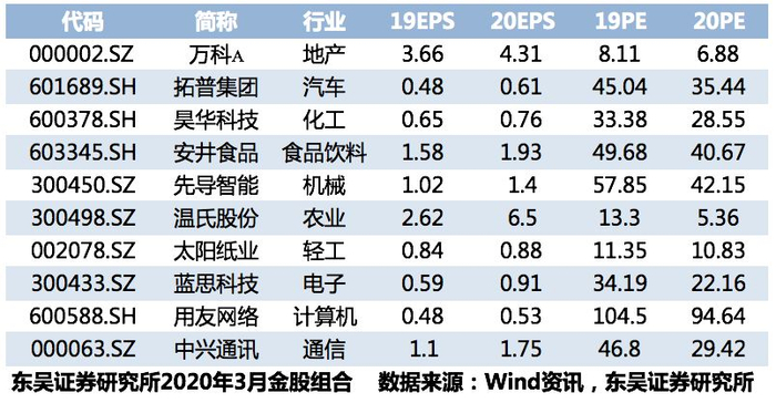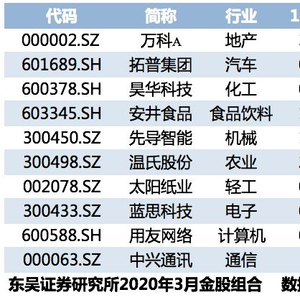 三月十大金股推荐